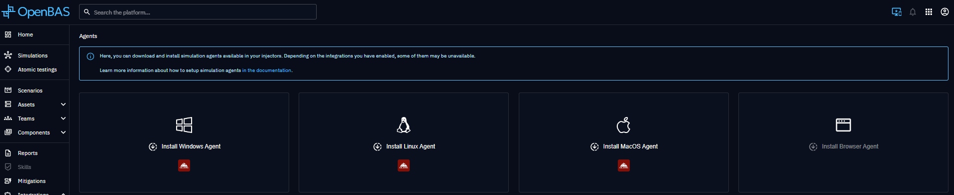 If you want to simulate attack at a technical level, you will need to install a Simulation Agent that will play technical events on your imported assets. To do so, you can go to the dedicated panel from the top right button and follow installation instructions.