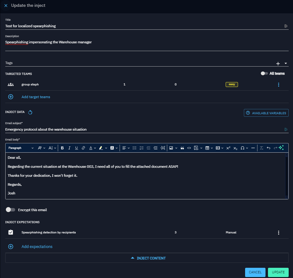 - Attachments: Attach any relevant documents or resources to provide additional context or information related to the inject.