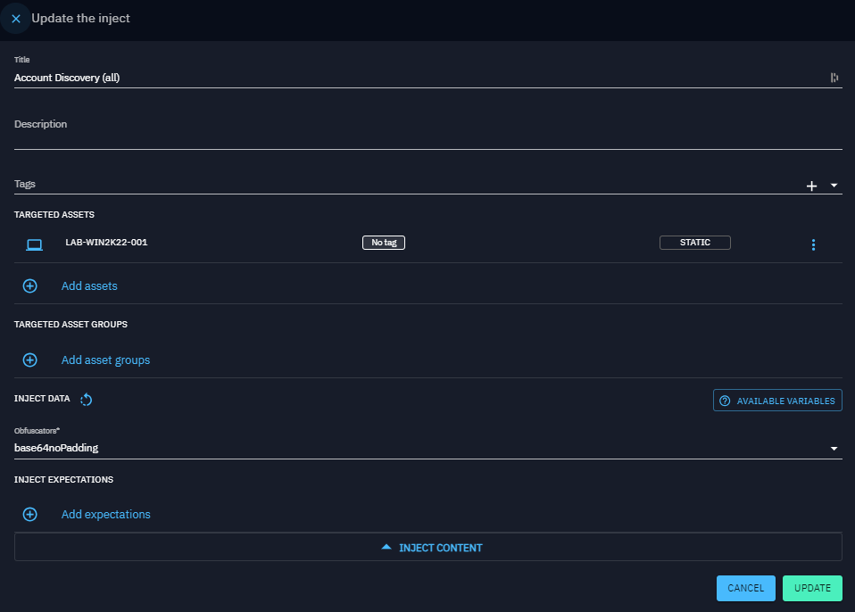 Each Inject is associated with Expectations. Expectations outline the anticipated outcomes from security systems and teams in response to attacker actions or contextual events.