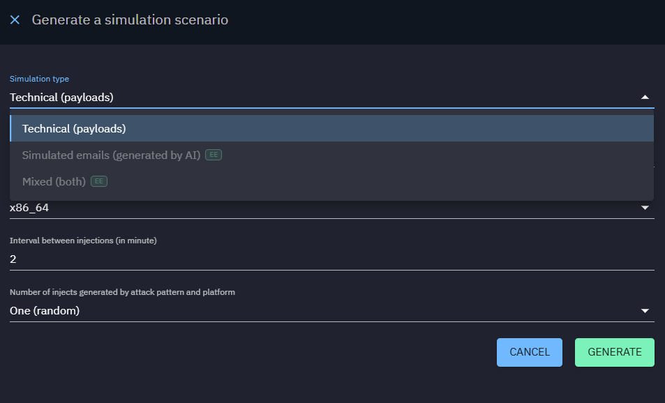 Simulation type Can be either "Technical" (payloads) or "Simulated" (emails)