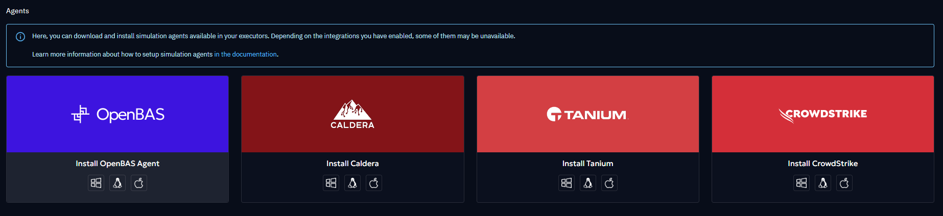 The OpenBAS agent is available for Windows, Linux and MacOS, it is the native / default way to execute implants and payloads on endpoints.