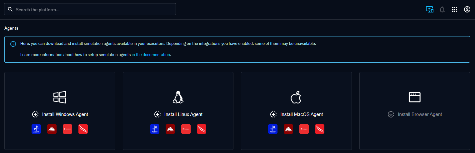 The OpenBAS platform manages 4 executors which can be installed on Windows, Linux and MacOS. This table below summarizes the information about each agent.