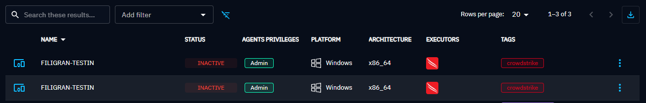 NB : An Asset can only have one CrowdStrike agent installed due to the uniqueness of the MAC address parameters. If you try to install again a CrowdStrike agent on a platform, it will overwrite the actual one and you will always see one Endpoint on the OpenBAS endpoint page.