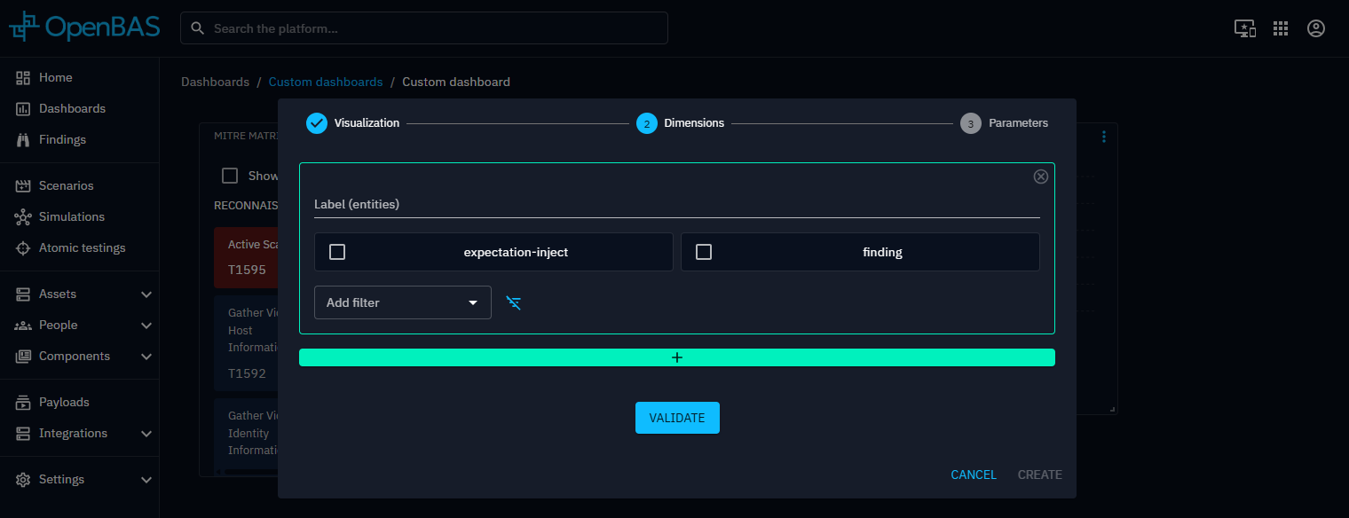 Dimensions are determined by the selected perspective and define the dataset used by the widget. You can also apply filters to refine the data and focus the analysis on specific subsets.