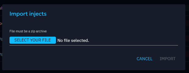 The Export & Import functionality allows users to transfer injects between *simulations, scenarios, and atomic testings *. Injects are exported along with their configuration details and can be imported across different instances.