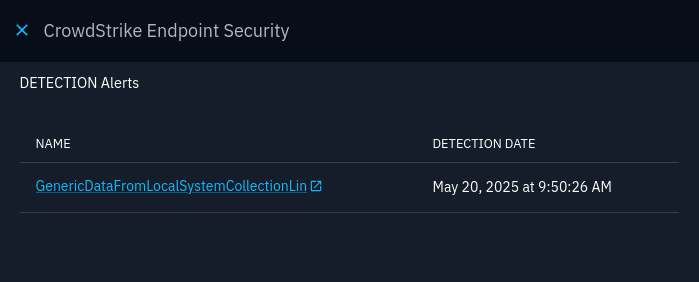 To get the details of this alert, you can click on the CrowdStrike line to see this: