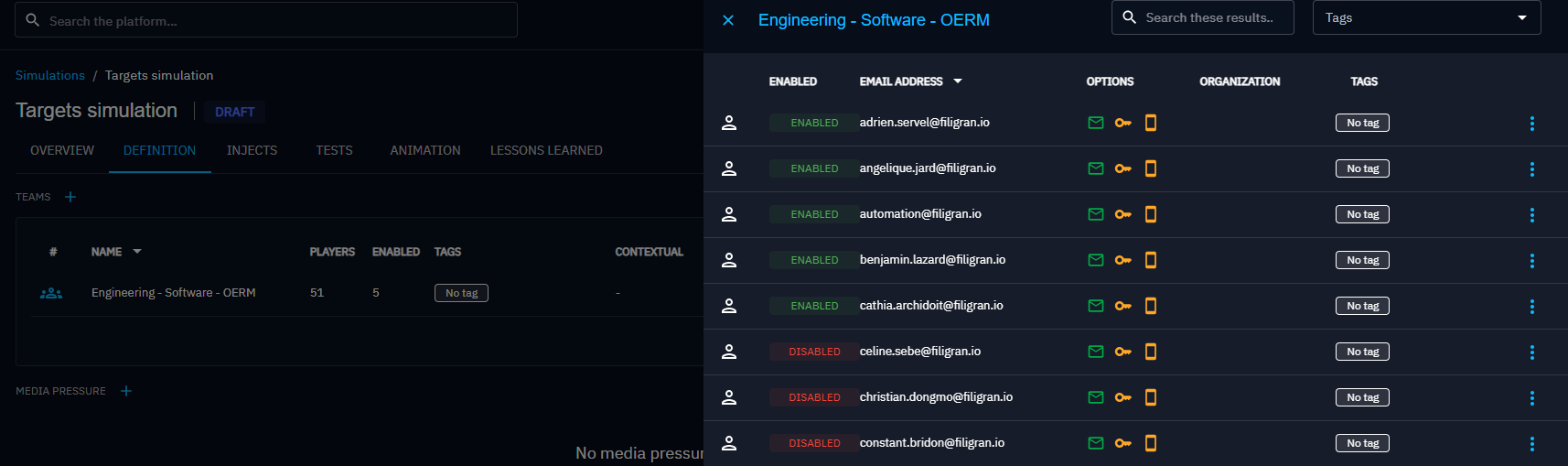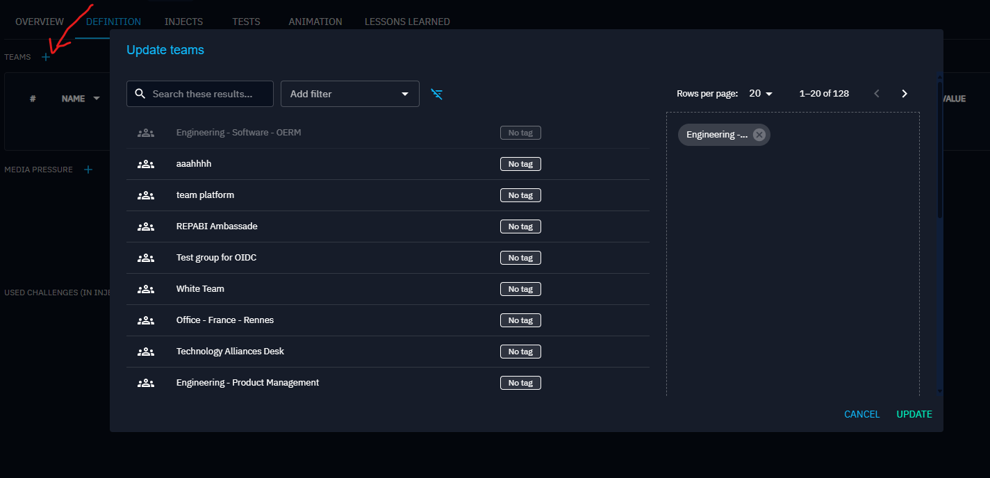 Now the user can target the team when adding an inject in the simulation/scenario.