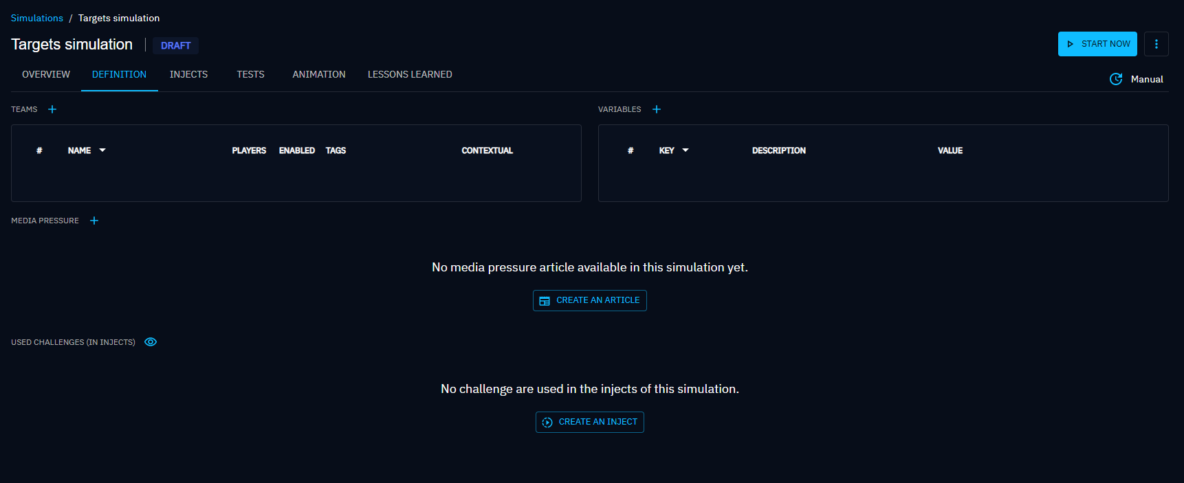 Consider a simulation/scenario that was just created. Go to the Definition tab.