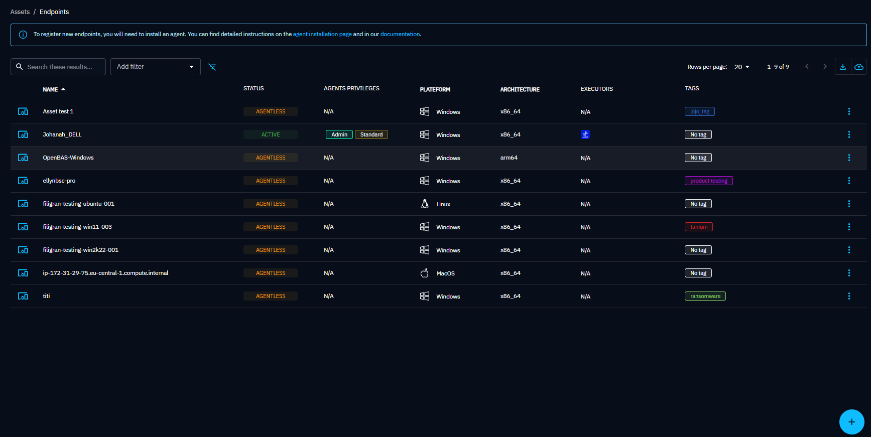 To register new endpoints, you will need to install an agent. You can find detailed instructions on the agent installation page.