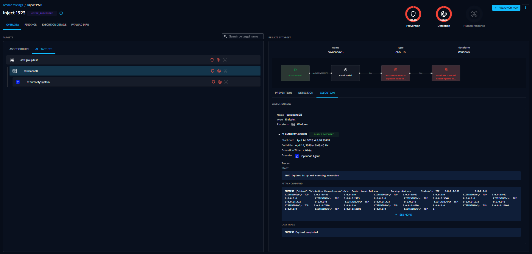 This screen is available for technical injects only. You can see the details of the payload related to the test.