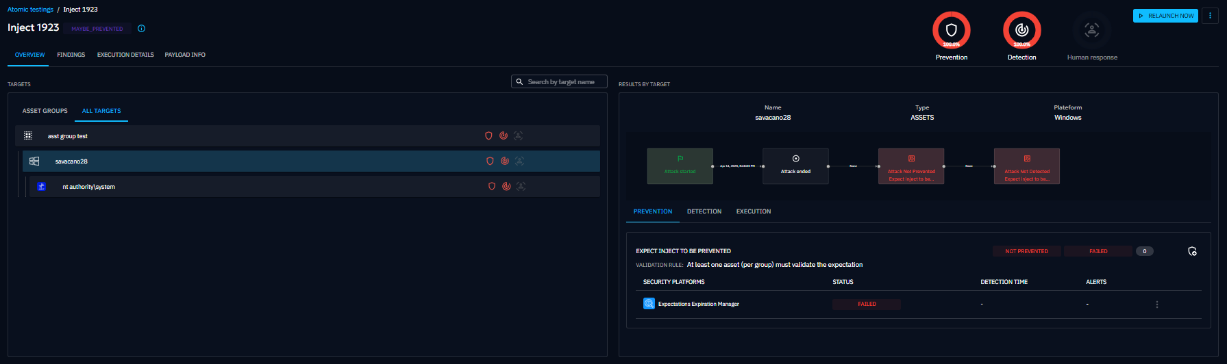 The first screen displayed when you click on a specific Atomic testing from the list is a breakdown of your security posture against this test.
