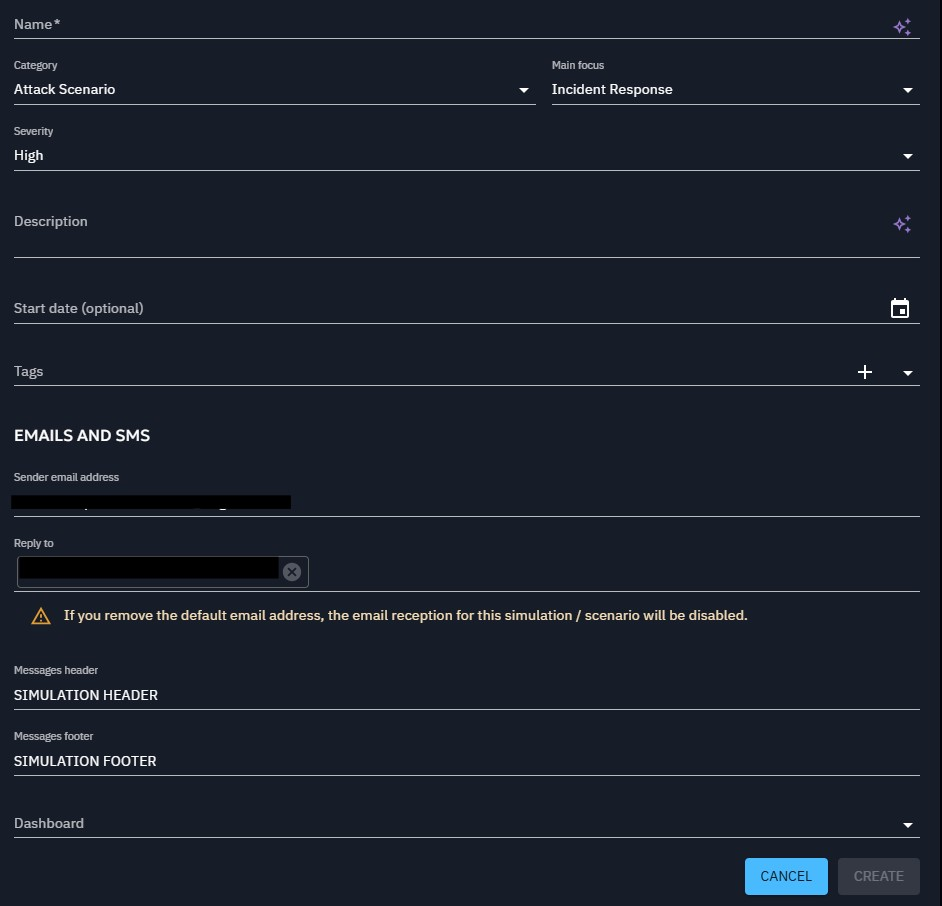 The best practice to create a Simulation is to do it from a Scenario in order to evaluate your security posture over time against a specific threat context.