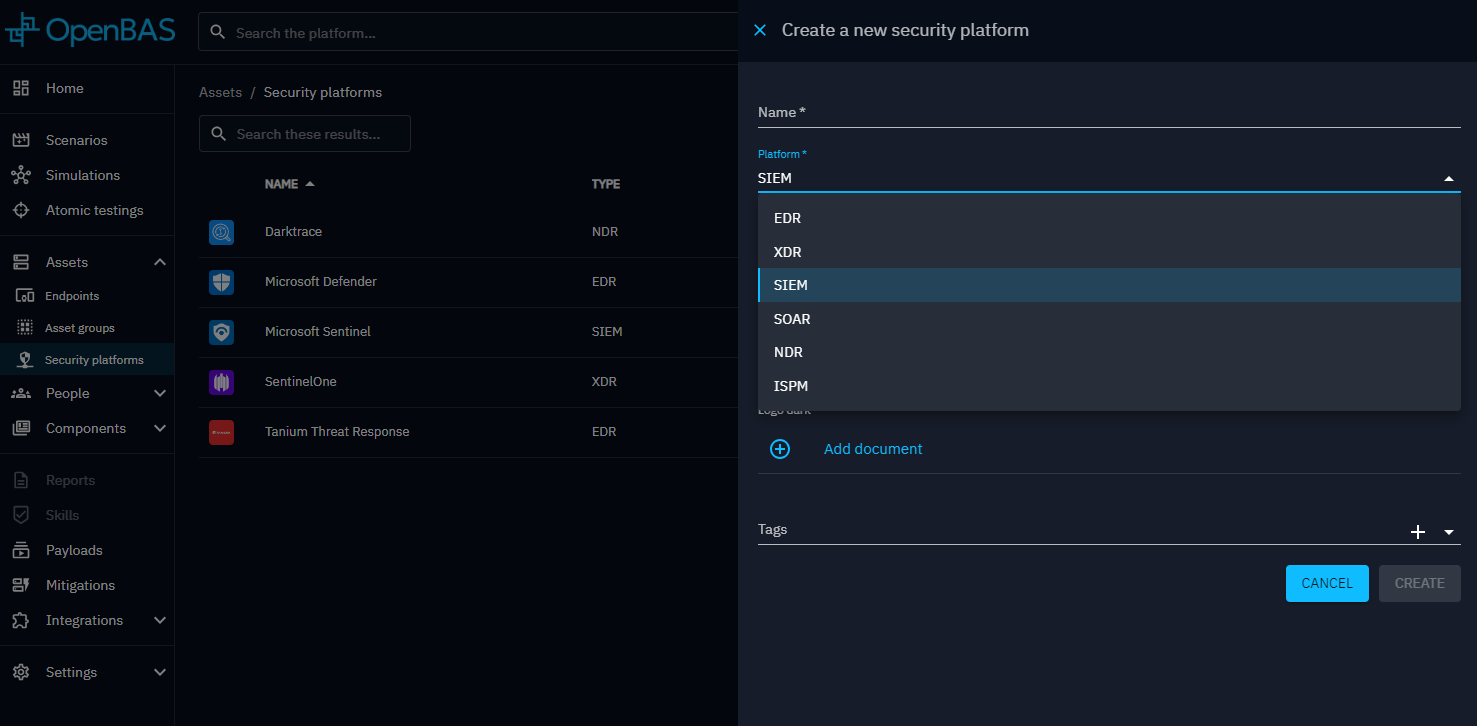OpenBAS strives to support as many integrations as possible with the most popular tools on the market. However, if your security platform integration is not yet available, you can create it manually here.