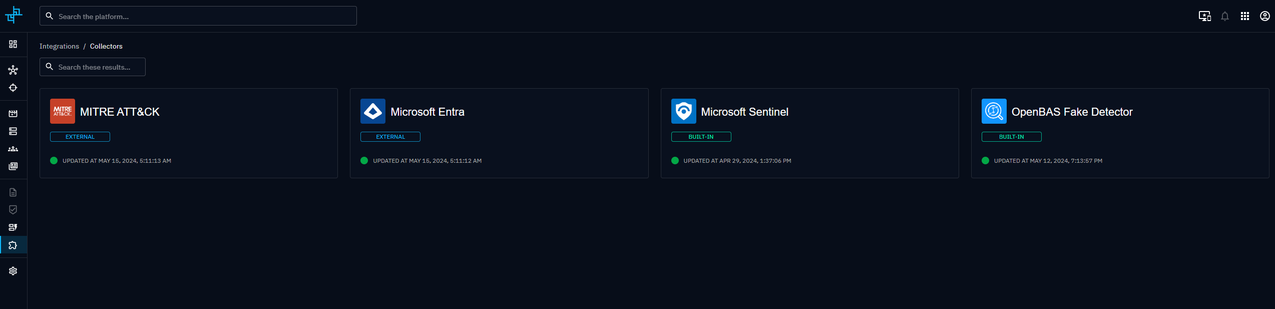 All external collectors have to be able to access the OpenBAS API. To allow this connection, they have 2 mandatory configuration parameters, the OPENBAS_URL and the OPENBAS_TOKEN. In addition to these 2 parameters, collectors have other mandatory parameters that need to be set in order to get them work.