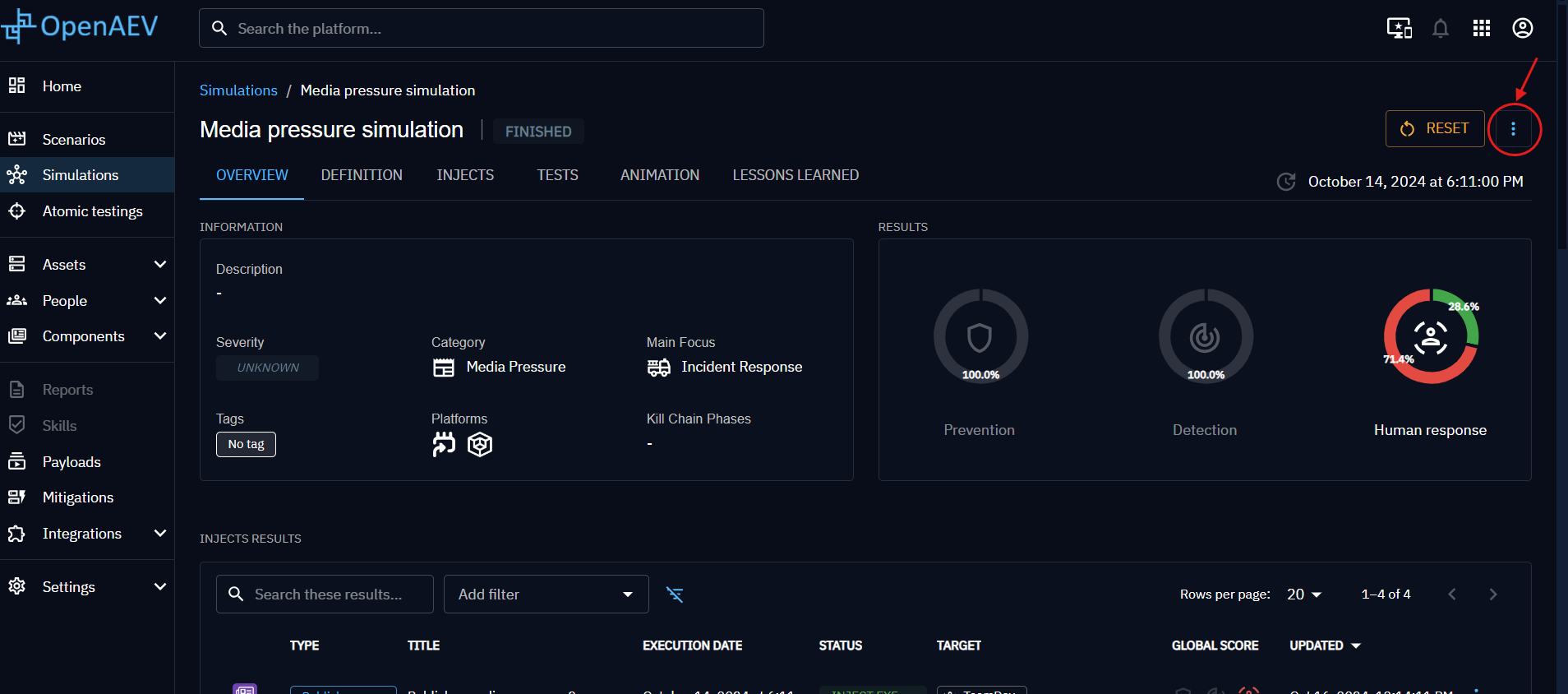 Click on the "PDF" button on the top of the simulation report details page to generate a PDF format.