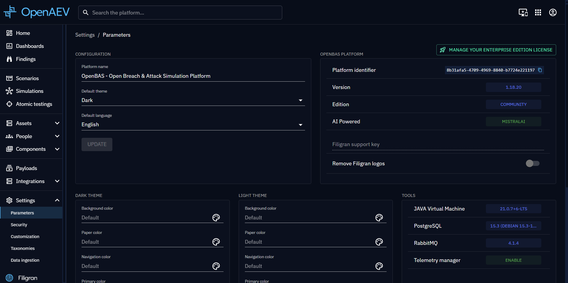 - Filigran is the only company producing and providing OpenAEV Enterprise Edition license keys.
