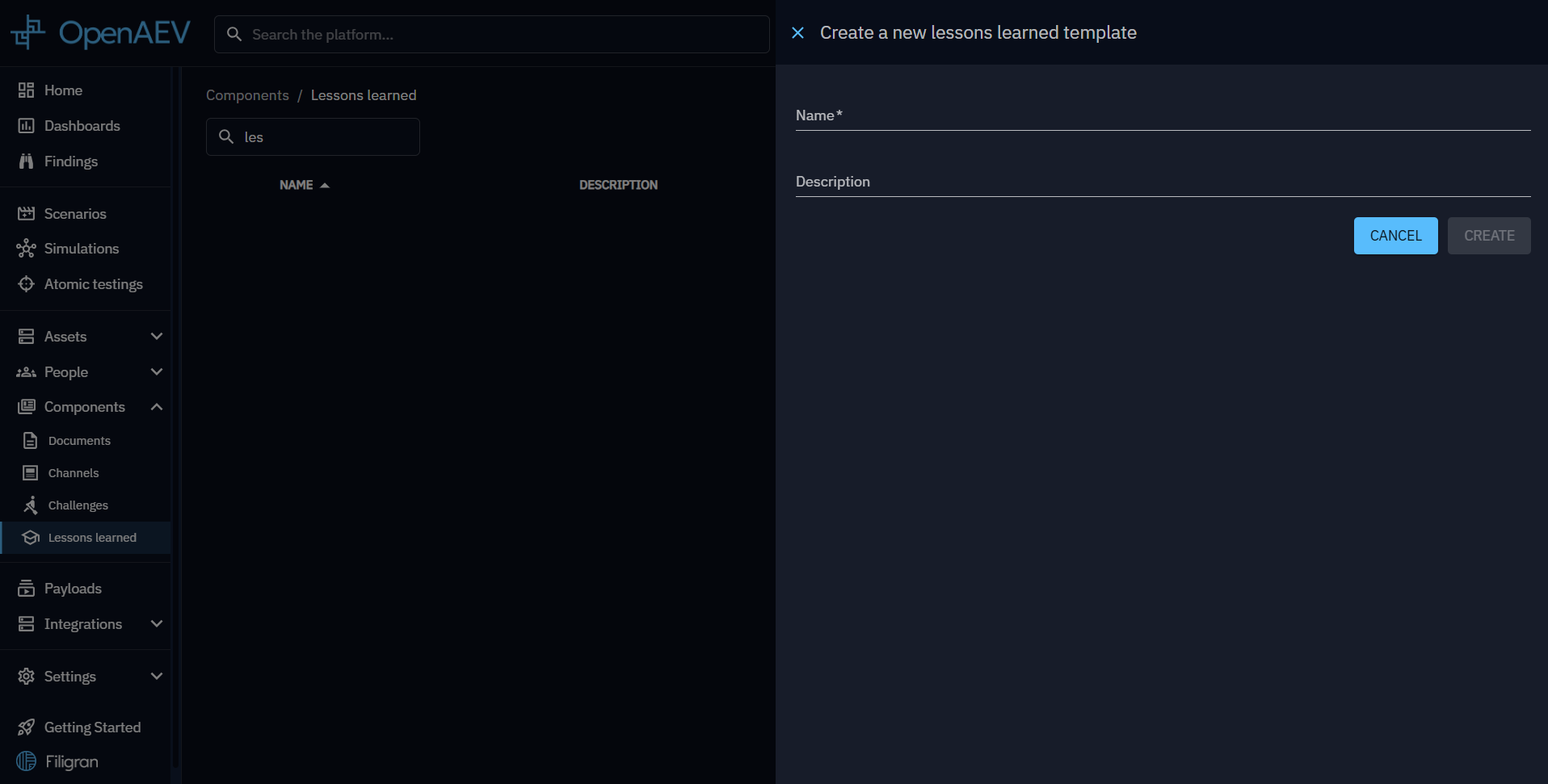 Lessons in OpenAEV enable you to create customizable surveys for your simulations. These surveys can be composed of various categories and questions within those categories. This feature helps in conducting the often overlooked part of a Breach and Attack Simulation involving real people, by automating the process and complementing your simulation results with qualitative feedback.