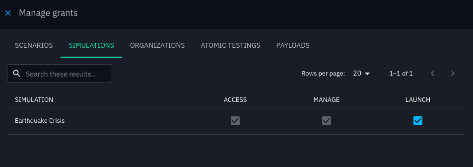 In addition to general capabilities, OpenAEV also supports grants. Grants are more precise: they allow access to a specific resource, such as one particular simulation, without giving the user access to all simulations.
