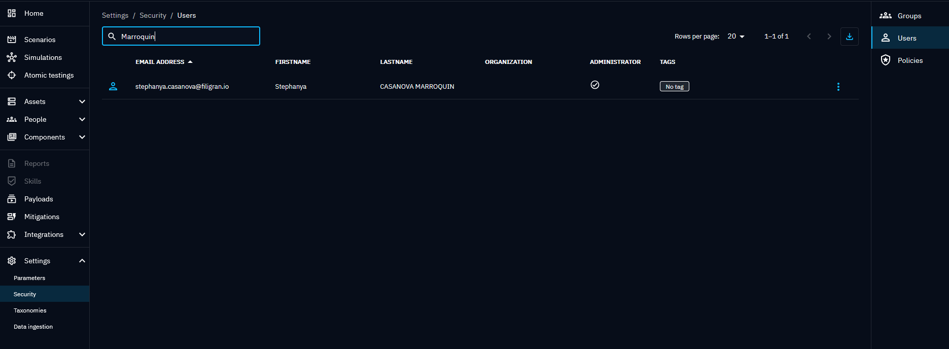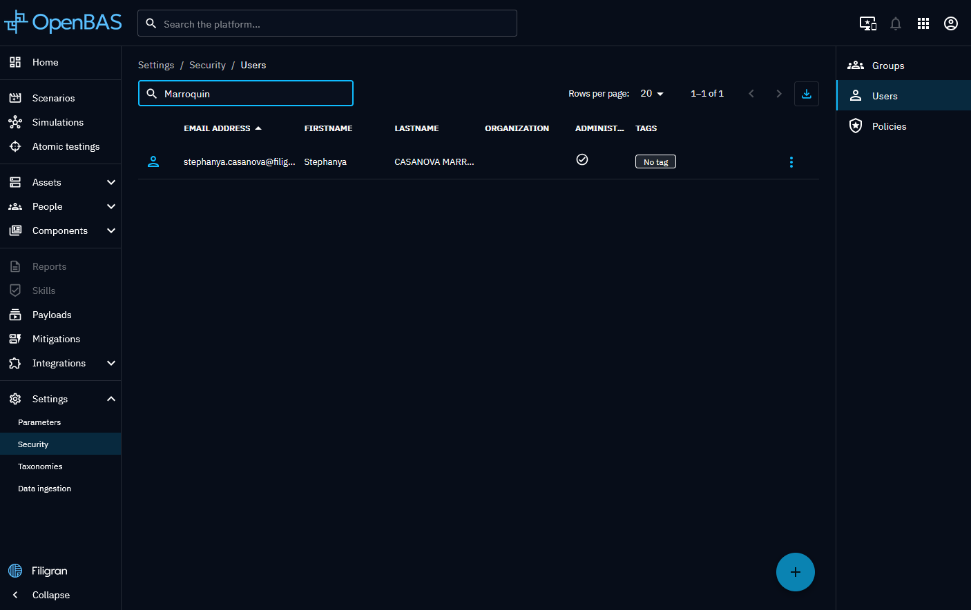 You can manage users in Settings > Security > Users. If you are using Single Sign-On (SSO), user accounts in OpenAEV are automatically created upon login.