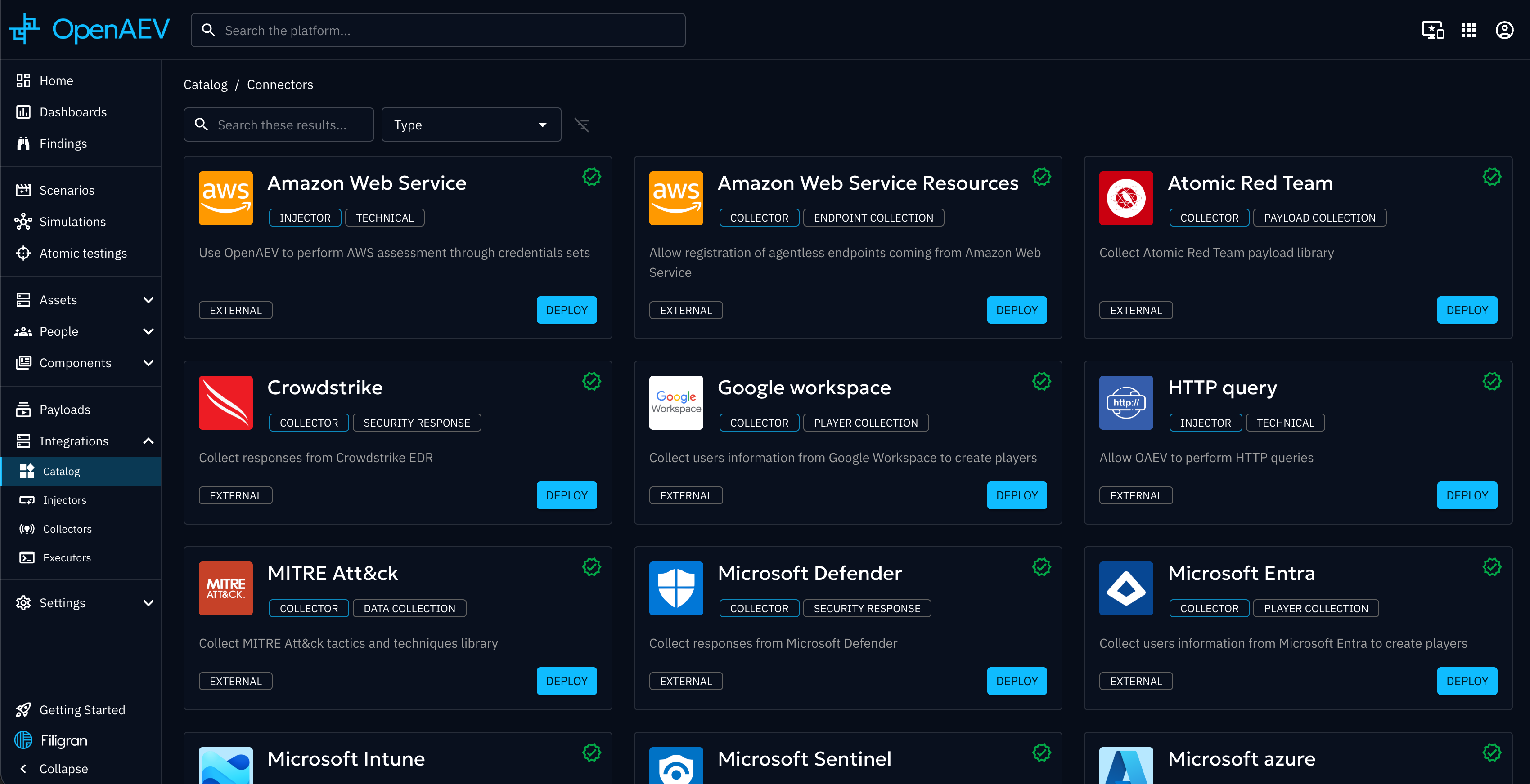 - If a collector, injector or executor has already been deployed, it will no longer appear in the Catalog. Instead, you’ll find it in its associated page (Collectors, Injectors, or Executors).