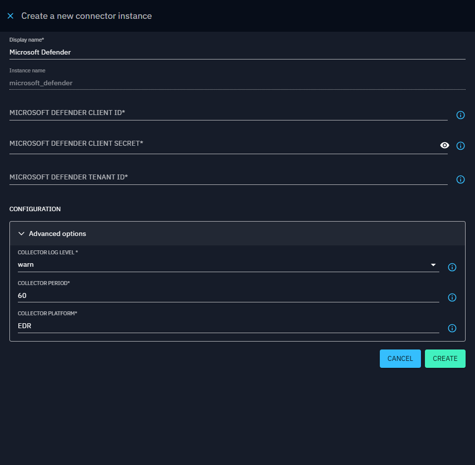 Click Create. Once the collector is created, you will be redirected to the collector instance view.