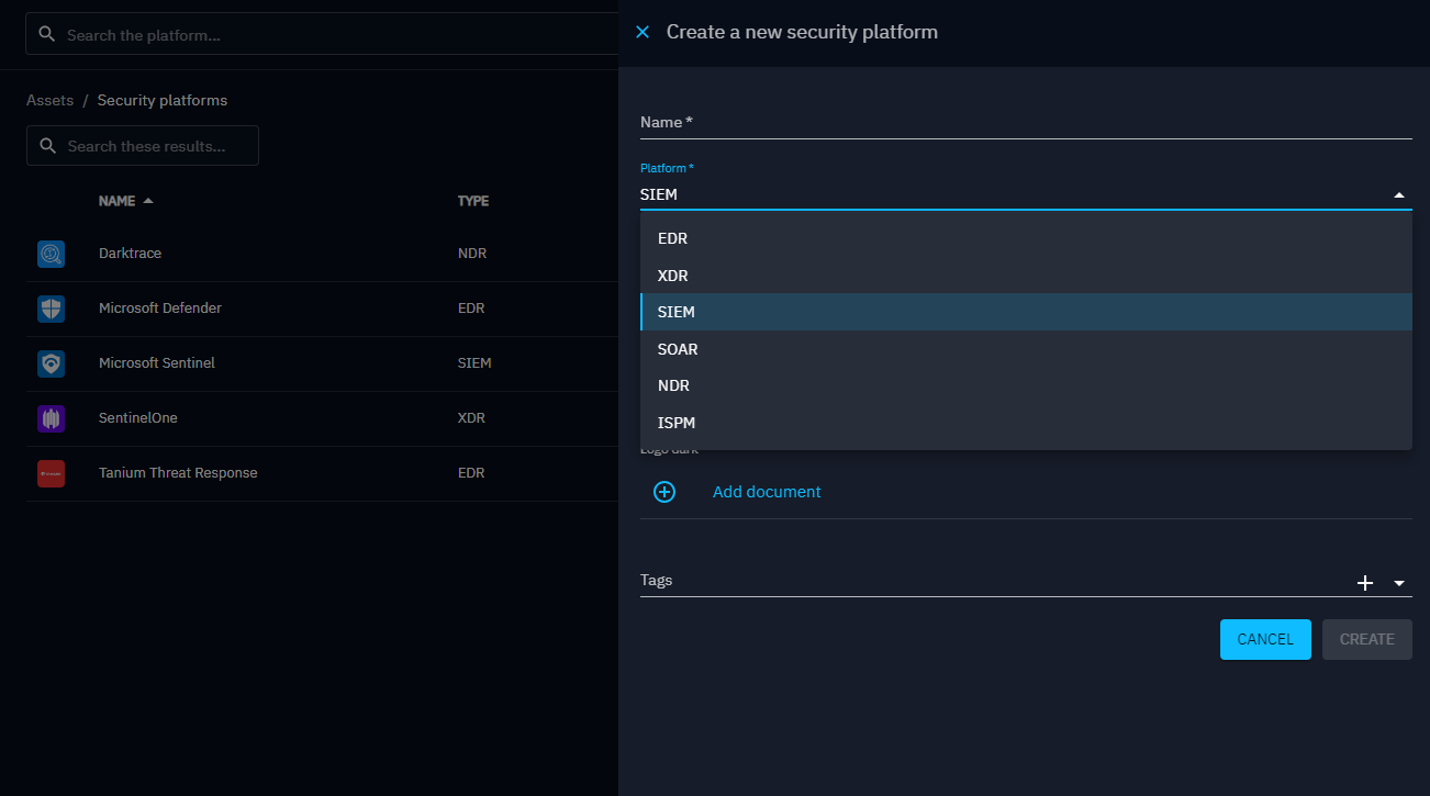 Endpoints: Individual entities, representing any object or terminal that can be connected to a network.Asset groups: Group of asset allowing you to organize endpoints into logical groups based on various filters applied by the user.Security platforms