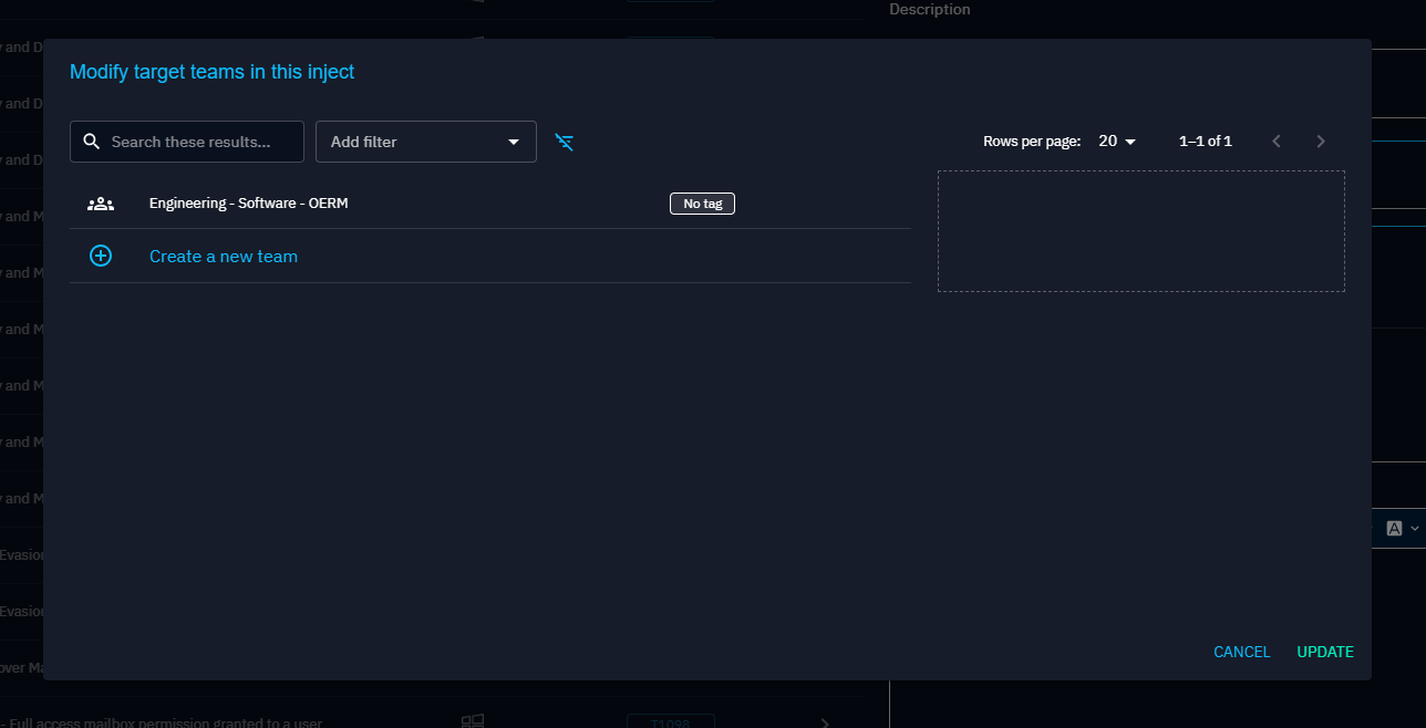 Now the user can target the team when adding an inject in the simulation/scenario.